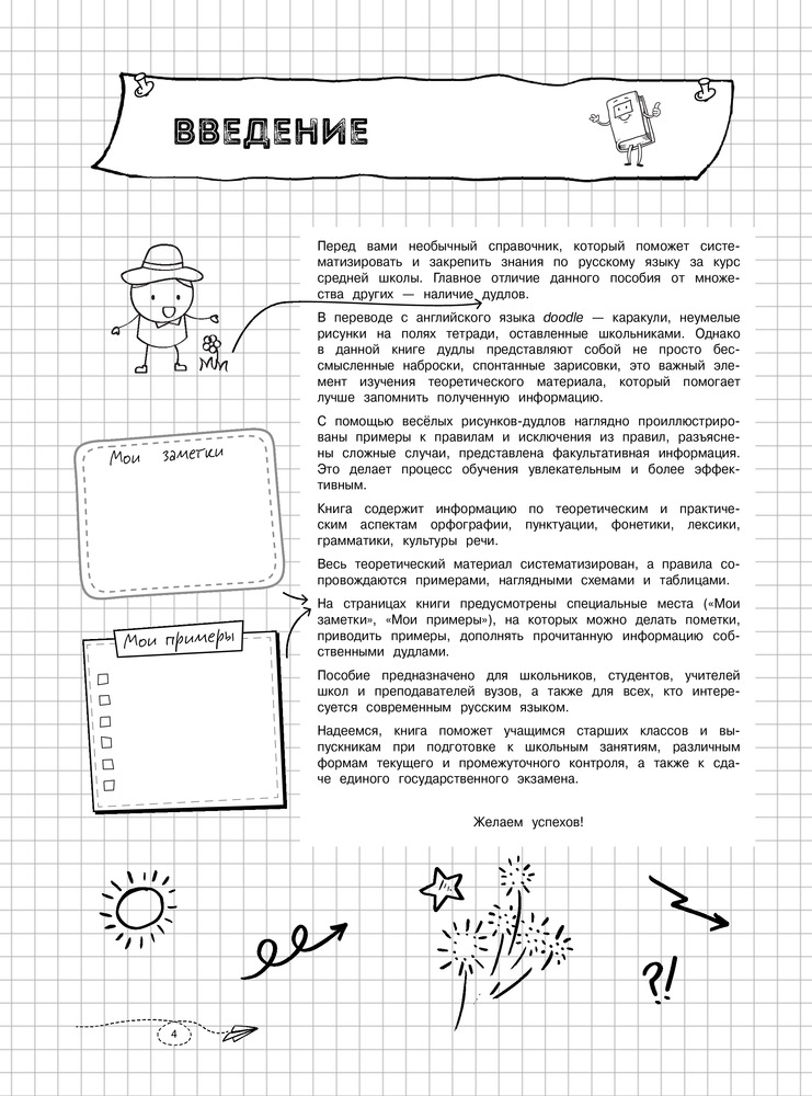Наглядный русский языкЕлена Викентьевна Железнова, Светлана Евгеньевна Колчина В данный момент этот товар отсутствует в продаже. Возможно, у нас найдется аналогичный или похожий товар здесь. Серия: Новый справочник школьника с дудлами Справочник содержит сведения по всем темам школьного курса русского языка. Весь теоретический материал систематизирован, сопровождается примерами, наглядными схемами и таблицами, а также рисунками на полях (дудлами), которые помогают лучше запомнить полученную информацию. Пособие предназначено для школьников и учителей, а также для всех, кто интересуется вопросами русского языка. |