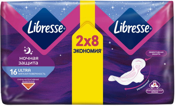 Libresse Прокладки женские ночныеВ данный момент этот товар отсутствует в продаже. Возможно, у нас найдется аналогичный или похожий товар здесь. Серия: Ultra Прокладки «Libresse» обеспечивают длительную свежесть, благодаря новому дышащему верхнему слою. А особая анатомическая форма впитывающего слоя надежно защищает от протеканий. |