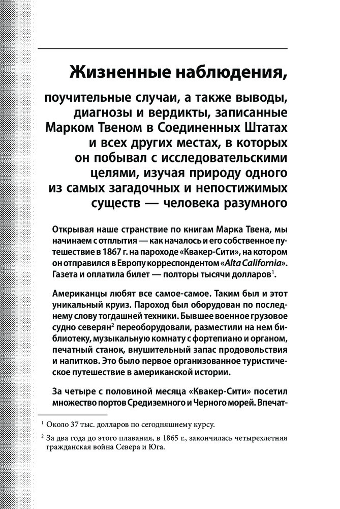 💳 Оплатить за товар можно при получении 🇰🇿 Есть бесплатная доставка по Казахстану 🎁 Копите бонусы с каждой покупки Серия: Великие личности (обложка) Это книга, которая Марком Твеном была написана, но осталась неизданной. Из бесконечного многообразия его текстов мы отобрали те мысли, абзацы, периоды, анекдоты, занимательные истории — были и небылицы, которые являют нам Марка Твена не в новой, а в истинной его ипостаси: морального философа, грустного шутника «с осенью в сердце». Это собрание не столько острот, сколько приговоров — проницательных и безжалостных, но «с правом на помилование». Их Марк Твен выносит роду человеческому, к которому имел горькое удовольствие принадлежать. И при этом великий остроумец Марк Твен не был скептиком, хоть и видел людей насквозь. Скептик не верит в будущее — Марк Твен работал на него. В полном соответствии с афоризмом «будущее уже наступило; просто оно еще неравномерно распределено», под которым он и сам подписался бы, Твен пользовался всеми новинками прогресса. Одним из первых он отбросил перо и сел за пишущую машинку. В результате уже ни один издатель не мог сократить его текст, ссылаясь на то, что почерк автора неразборчив. В свободное время он любил писать в газеты опровержения о своей смерти, что-то вроде «Слухи о моей смерти сильно преувеличены». В конце концов он достал всех редакторов, и они стали к этому сообщению добавлять: «К сожалению». На что поклонники автора во всем мире и сегодня были бы рады ответить: «К счастью!» Тем более что сам Твен писал: «Я приближаюсь к порогу старости; в 1977 году мне стукнет сто сорок два. Довольно порхать по белу свету». И пусть до 1977-го Твен немного не дотянул,— но он жив и в 2020-м! How are you, Mr. Twain? |