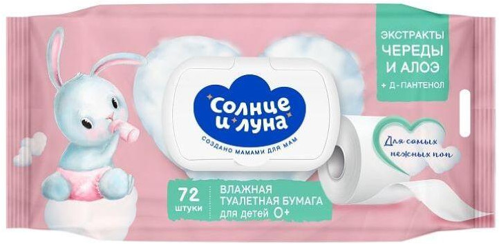 Солнце и луна Бумага туалетная детская с экстрактом череды-20% +7 мягкая смываемая с крышкой для детей