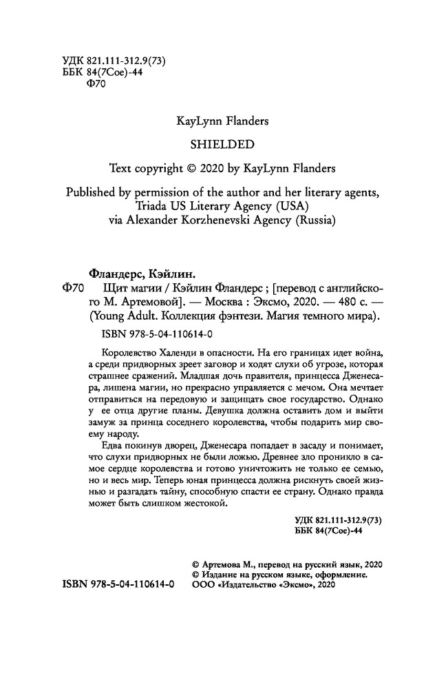 Щит магииВ данный момент этот товар отсутствует в продаже. Возможно, у нас найдется аналогичный или похожий товар здесь. Серия: Young Adult. Коллекция фэнтези. Магия темного мира Королевство Халенди в опасности. На его границах идет война, а среди придворных зреет заговор и ходят слухи об угрозе, которая страшнее сражений. Младшая дочь правителя, принцесса Дженесара, лишена магии, но прекрасно управляется с мечом. Она мечтает отправиться на передовую и защищать свое государство. Однако у ее отца другие планы. Девушка должна оставить дом и выйти замуж за принца соседнего королевства, чтобы подарить мир своему народу. Едва покинув дворец, Дженесара попадает в засаду и понимает, что слухи придворных не были ложью. Древнее зло проникло в самое сердце королевства и готово уничтожить не только ее семью, но и весь мир. Теперь юная принцесса должна рискнуть своей жизнью и разгадать тайну, способную спасти ее страну. Однако правда может быть слишком жестокой. |