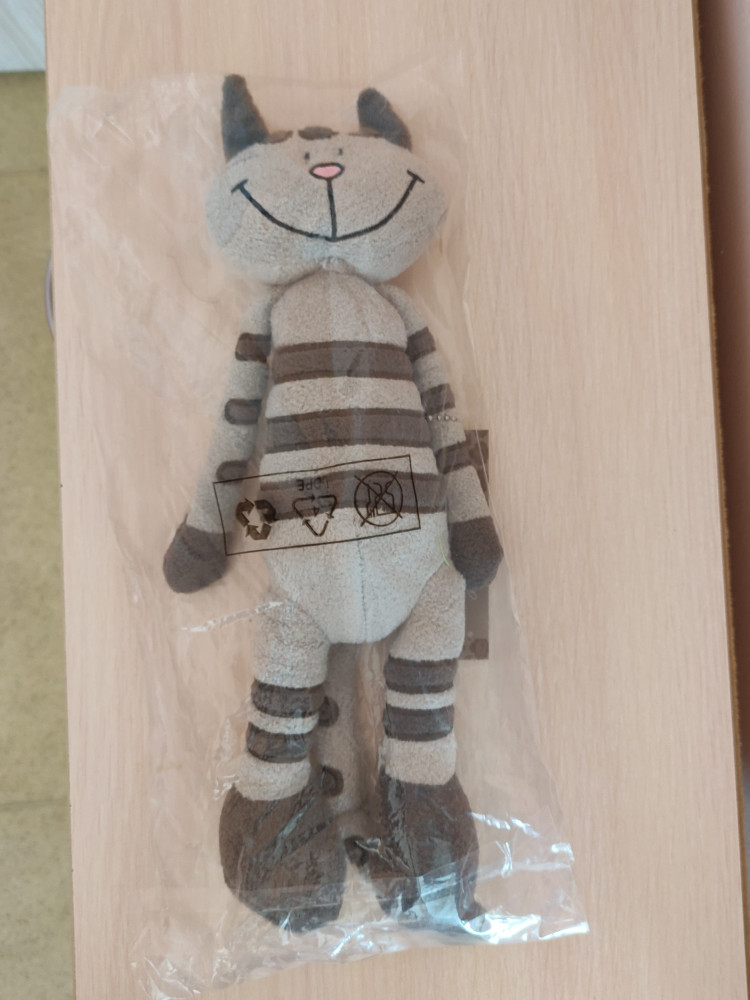 кот прекрасный, мягкий, улыбистый и имеет шарики-антистресс в попе и задних лапах, что радует ребенка