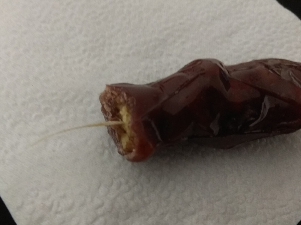 Очень вкусная чурчхела. Немного с кислинкой, орехи свежие. На веревочку нанизывают орехи, потом обмакивают в сиропе. Получается такой продукт.