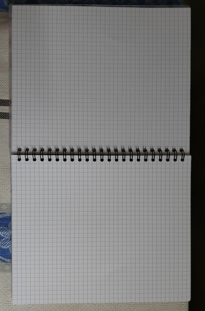 Стандартного размера общая тетрадь с пластиковой обложкой. Белые,плотные листы в клеточку. Хорошая тетрадь на спирали.