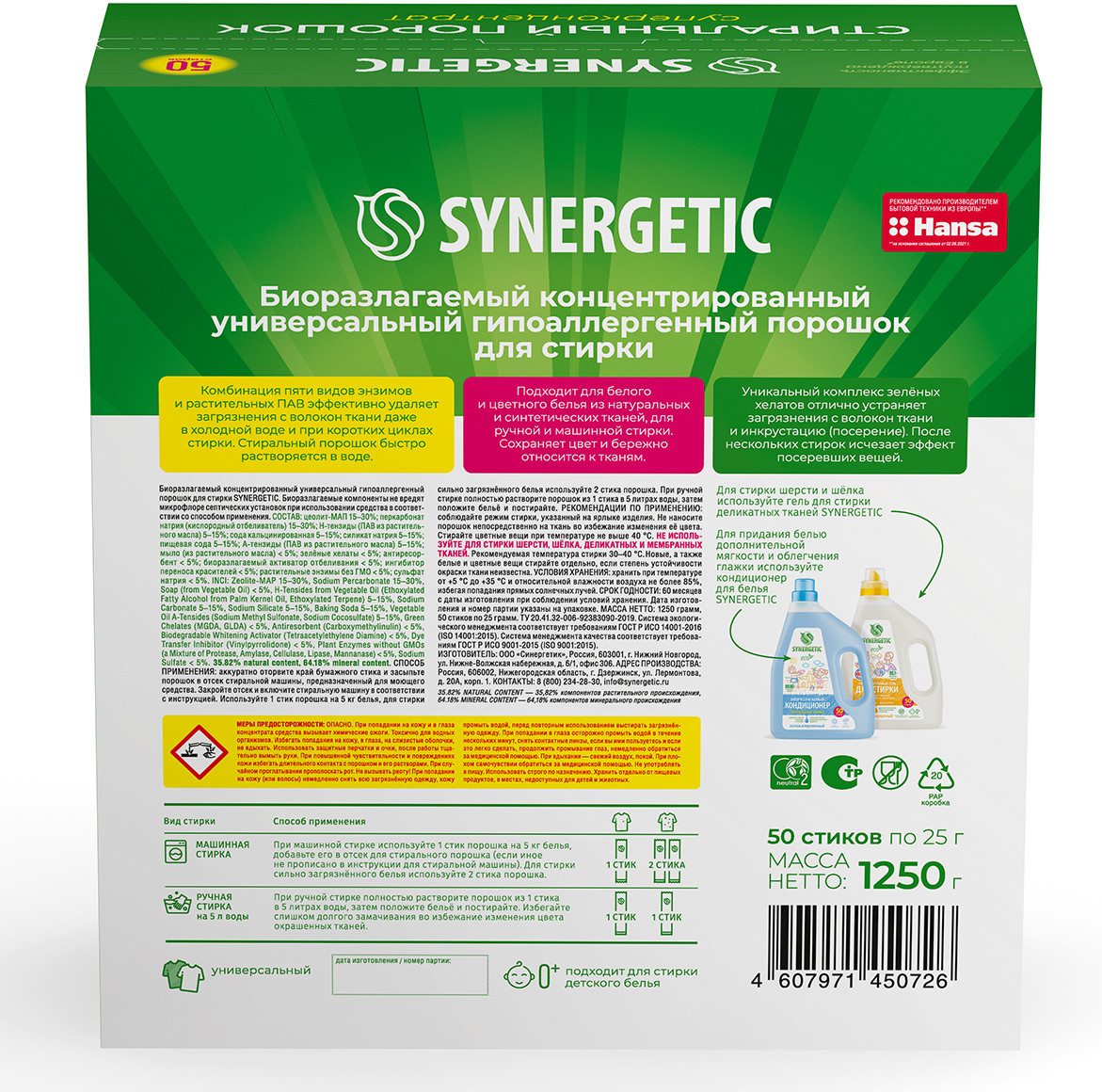 Synergetic Порошок стиральный в стиках