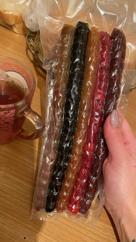 Чурчхела классная, мягкая, не сильно сладкая, можно перекусывать в офисе и не запивать сладость. Фундук свежий, вкусы все разные, но каждый по-своему вкусен. Наружная упаковка бумажная, но с зип-локом, можно закрывать, чтоб не сохла. Хотелось бы, чтобы каждая палочка была упакована отдельно.