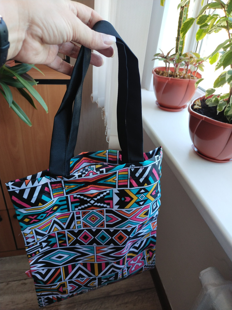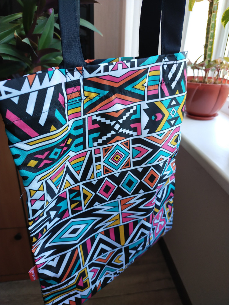 Сумка понравилась. Ткань плащевка, принт очень яркий, прошито все аккуратно.На мой рост длинноваты ручки,но это можно легко уменьшить.