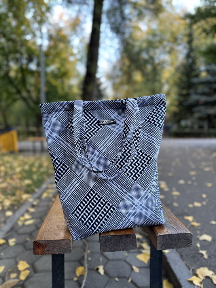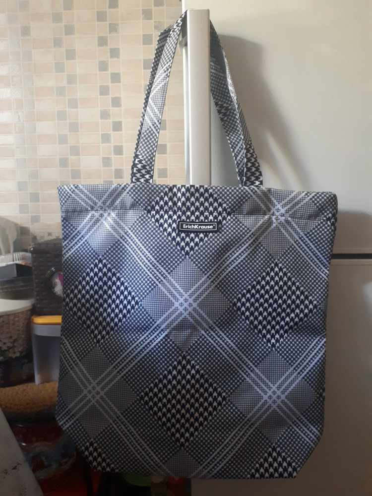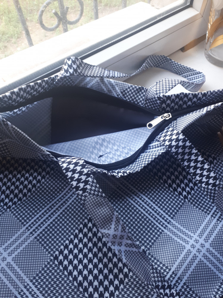 Хороший шоппер симпатичной немаркой расцветки. Прочная молния; внутри шоппера есть маленький кармашек.
