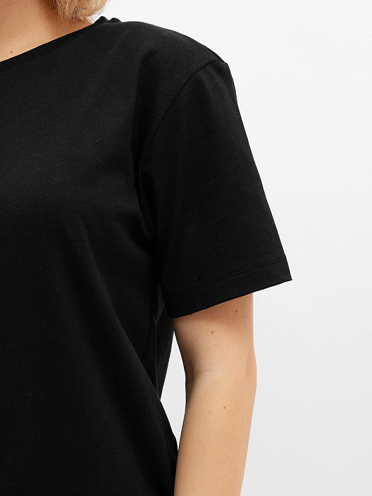 Очень качественный трикотаж и пошив, х/б. Цвет, как на фото, очень понравилась. По размеру - большемерит на 2 размера примерно, на ОБ 104 и ОГ 96 хорошо подошел 44 размер, не в обтяжку.
