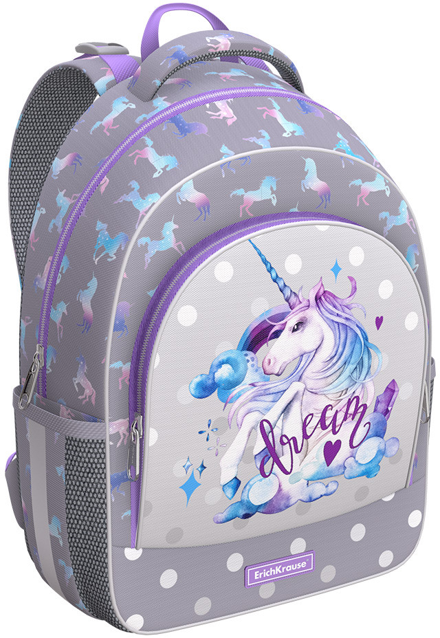 💳 Оплатить за товар можно при получении 🇰🇿 Есть бесплатная доставка по Казахстану от 1 дня 🎁 Копите бонусы с каждой покупки Серия: Dream Unicorn Классический каркасный рюкзак с эргономичной спинкой изготовлен из износо- и морозостойкого водоотталкивающего 100%-го полиэстера. Эргономичная многослойная конструкция спинки ErgoLine®System состоит из анатомических подушечек с вентиляционными каналами между ними. Спинка и внутренняя сторона лямок выполнены из воздухопроницаемого материала AirMesh с трехмерной структурой расположения волокон, которая препятствует образованию влаги при длительном контакте с телом ребенка. Мягкие комфортные лямки с противооткидами в сочетании со спинкой ErgoLine®System делают ношение рюкзака для ребенка комфортным и безопасным для позвоночника. |