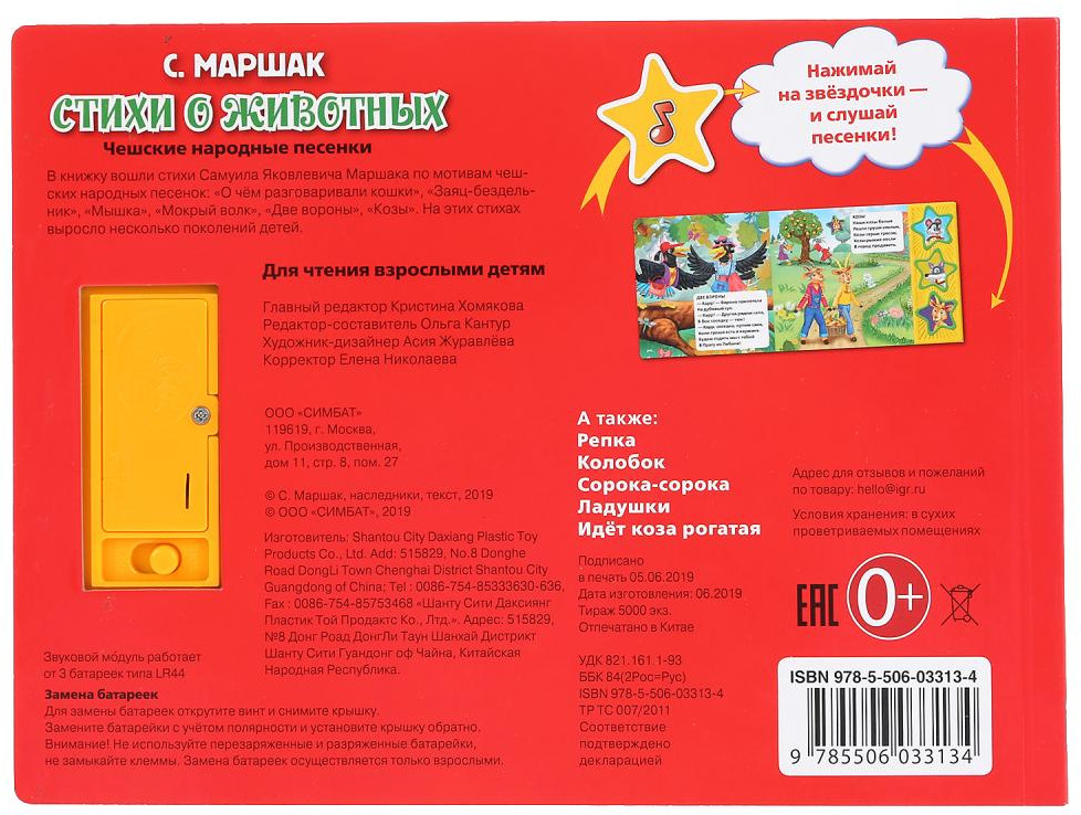 УМка Маршак. Стихи о животных. 3 музыкальных кнопки-35% +113
