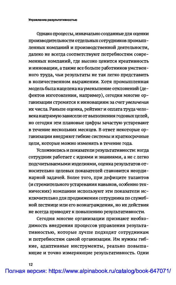 💳 Оплатить за товар можно при получении 🇰🇿 Есть бесплатная доставка по Казахстану от 1 дня 🎁 Копите бонусы с каждой покупки Серия: Гид HBR В последние годы традиционные подходы к управлению результативностью стали подвергаться жесткой критике. Многие бизнес-лидеры все чаще ставят под сомнение полезность ежегодной аттестации или, например, целесообразность планирования целей на год — все то, что традиционно влияет на зарплату сотрудника и его рейтинг успешности. |