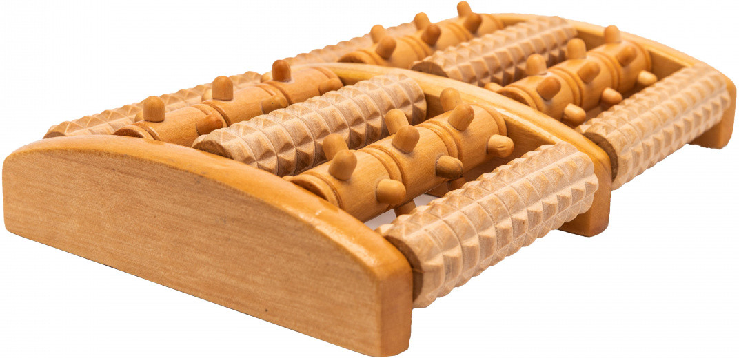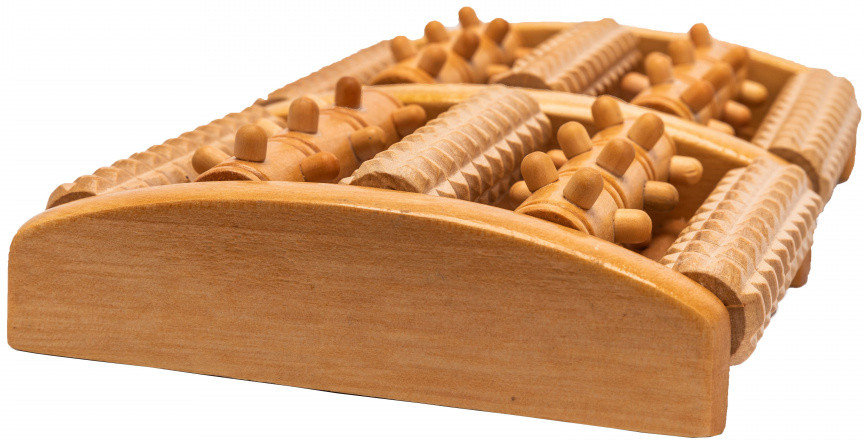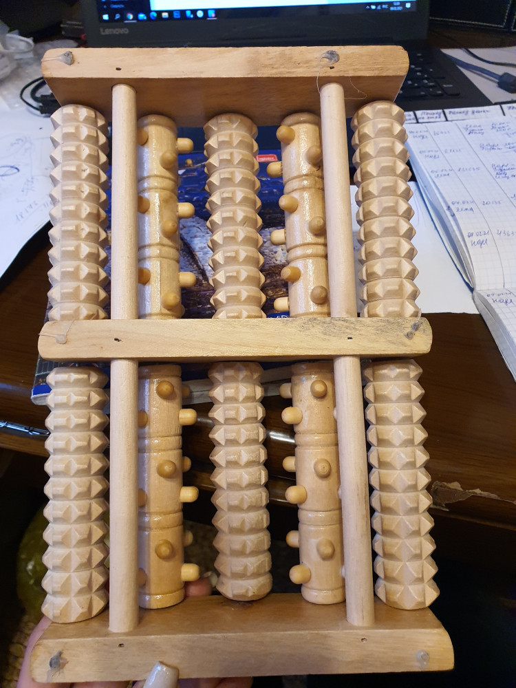 Уже писала отзыв, но напишу еще раз, так как, заказала еще один, уже 3-й. Думаю, что на этом не закончатся заказы))) Мои подруги, попробовав этот массажер, влюбляются в него. Хорошего размера, легко крутятся "костяшки", отлично проминают стопу. Дерево хорошего качества. Чтобы не катался по полу, в нескольких местах поставили точки термоклеем, тогда стоит на месте как приколоченный. На фото видно 6 точек.