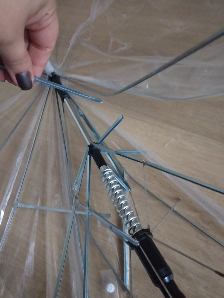 Зонт одноразовый. Вышла, ветром всё погнуло. Спицы из алюминия.