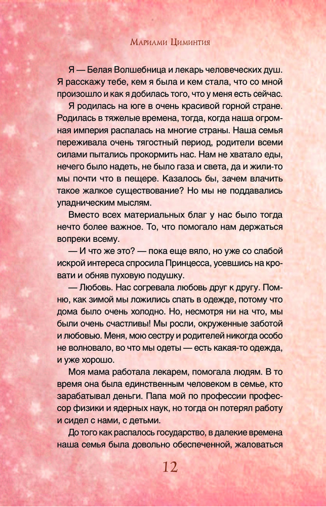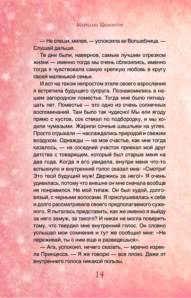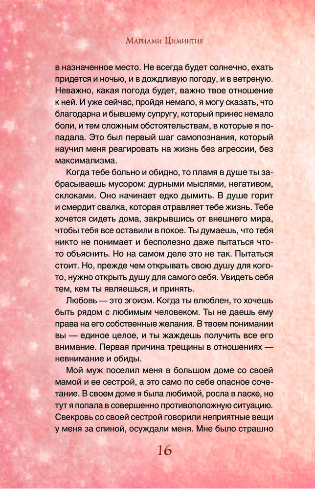 Эта книга предназначена для девушек и женщин, которые живут в "своем мире" одиноко закрывшись в комнате. Как бы книга помогает выбраться на белый свет и добиться желаемых целей. Мариам Циминтия — отличный мотиватор!