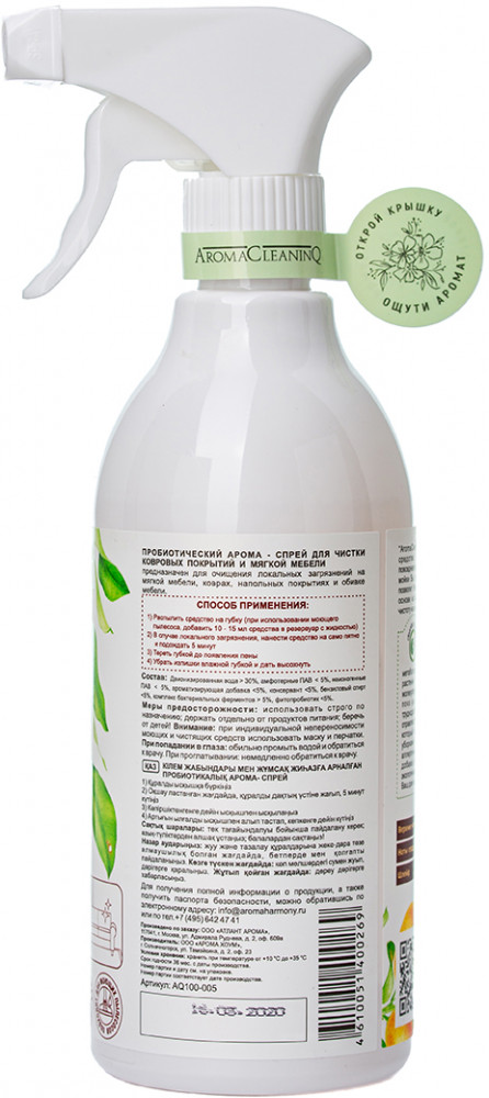 AromaCleaninQ Арома-спрей пробиотический для чистки ковровых покрытий и мягкой мебели
