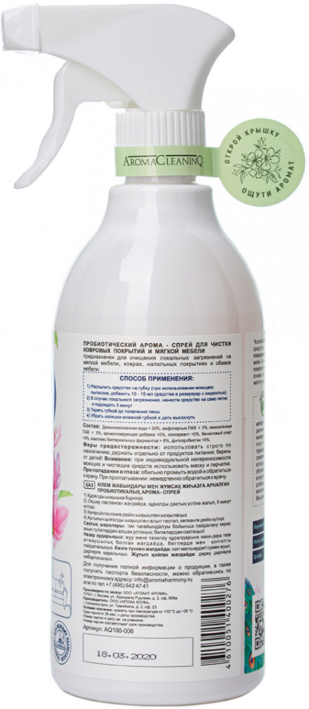 AromaCleaninQ Арома-спрей пробиотический для чистки ковровых покрытий и мягкой мебели