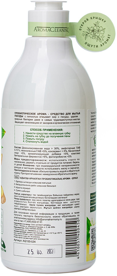 AromaCleaninQ Арома-средство пробиотический для мытья посуды