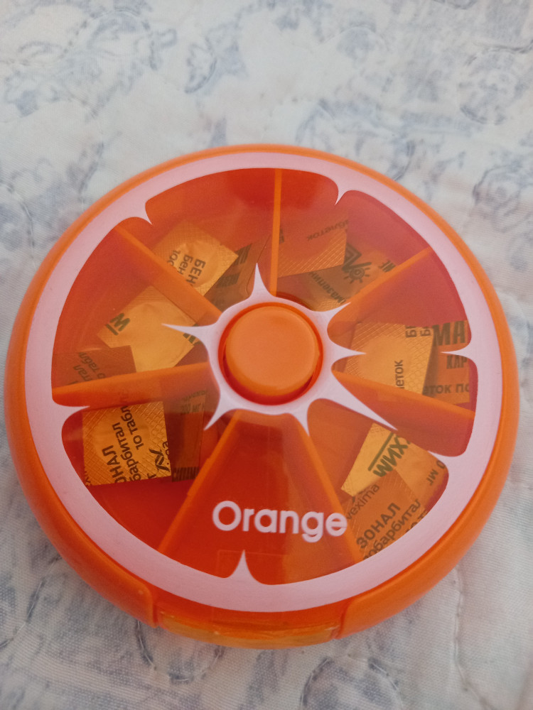 Заказала впервые, таблетница оранжевого цвета, яркая, поднимает настроение. Спасибо Flip, всё супер.