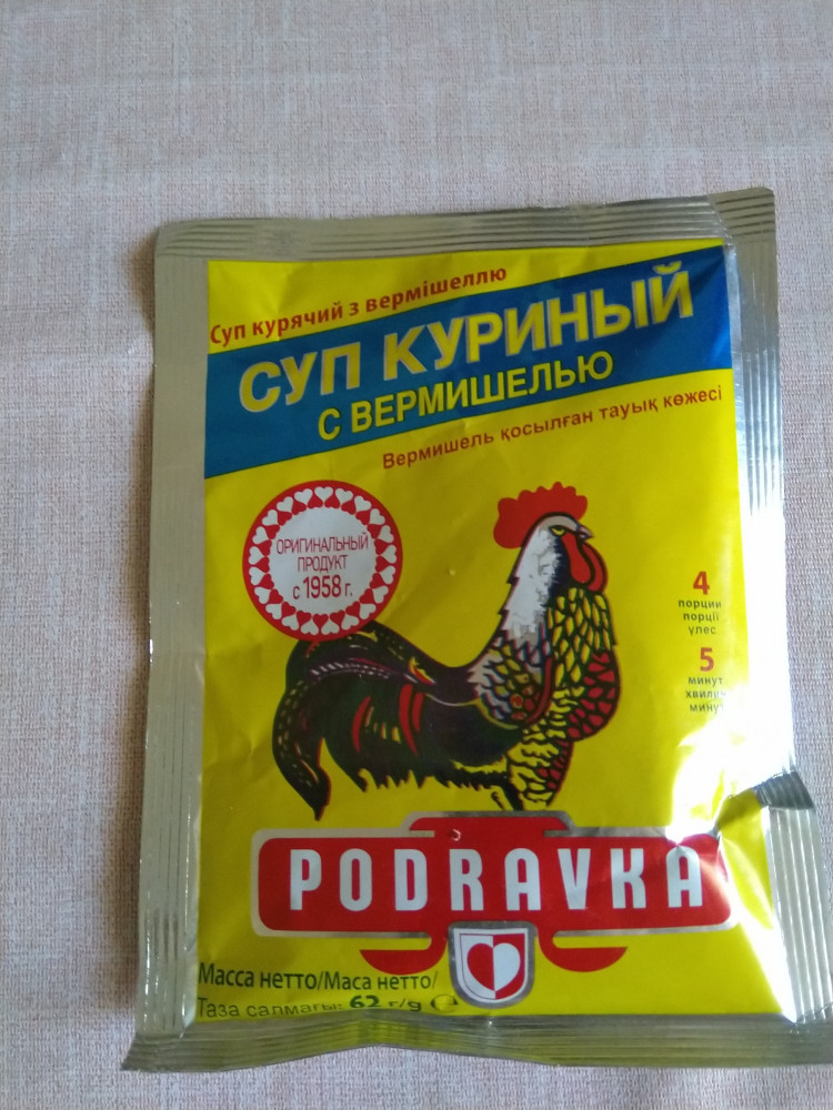 Отличный супчик с вермишелью. Хорватский продукт. Только не 4 порции, а 2. Бюджетный вариант, чтобы сэкономить.