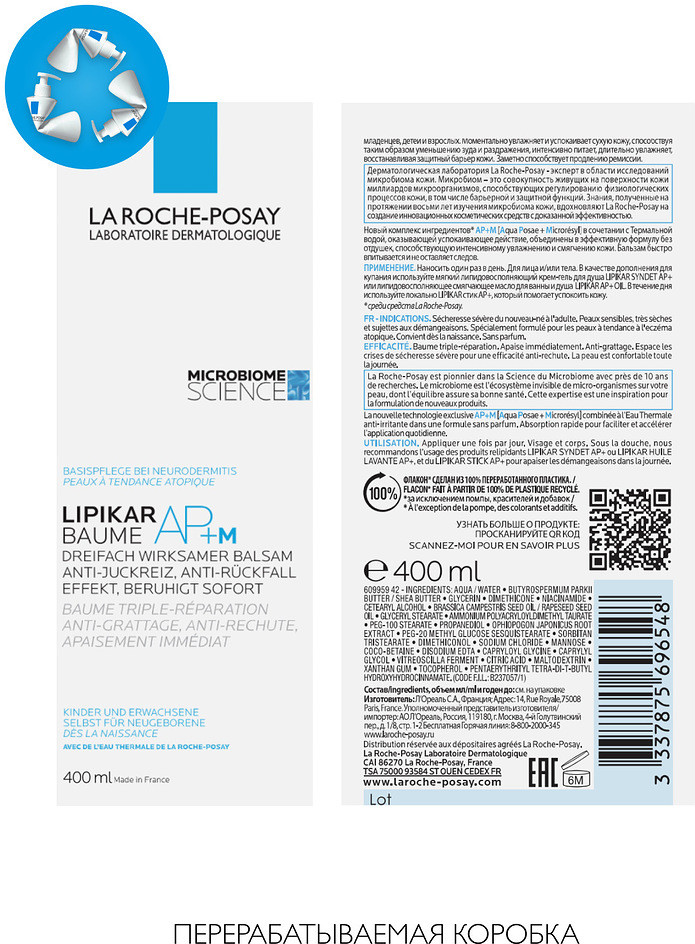 La Roche-Posay Lipikar AP+M Липидовосполняющий бальзам тройного действия для лица и тела