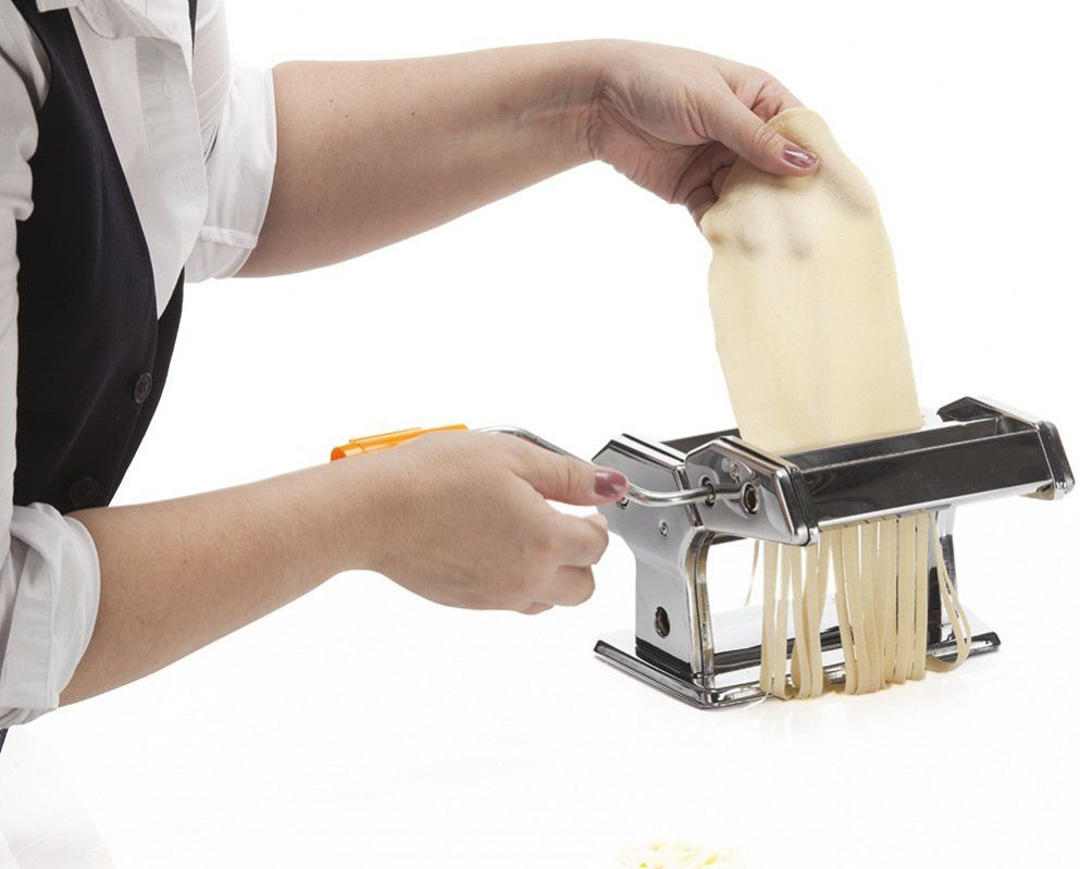 в целом понравилась. Если делать тесто, как указано в инструкции, то оно не прилипает к лапшерезке. Можно регулировать толщину раскатки теста. Но только две насадки для лапши шириной 2мм и 6 мм.