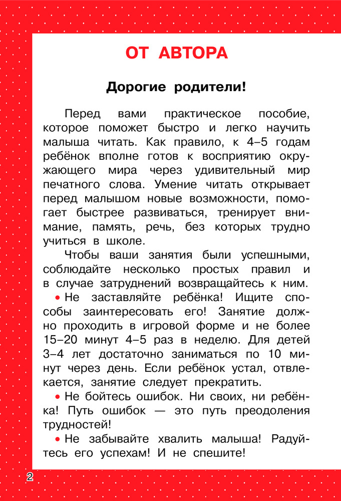 💳 Оплатить за товар можно при получении 🇰🇿 Есть бесплатная доставка по Казахстану от 1 дня 🎁 Копите бонусы с каждой покупки Серия: Раннее обучение в картинках Умение читать открывает перед ребёнком новые возможности, тренирует внимание, память, речь, помогает гармонично развиваться. Перед вами книга, которая поможет быстро научить вашего малыша читать. Научиться читать можно легко и с удовольствием! |