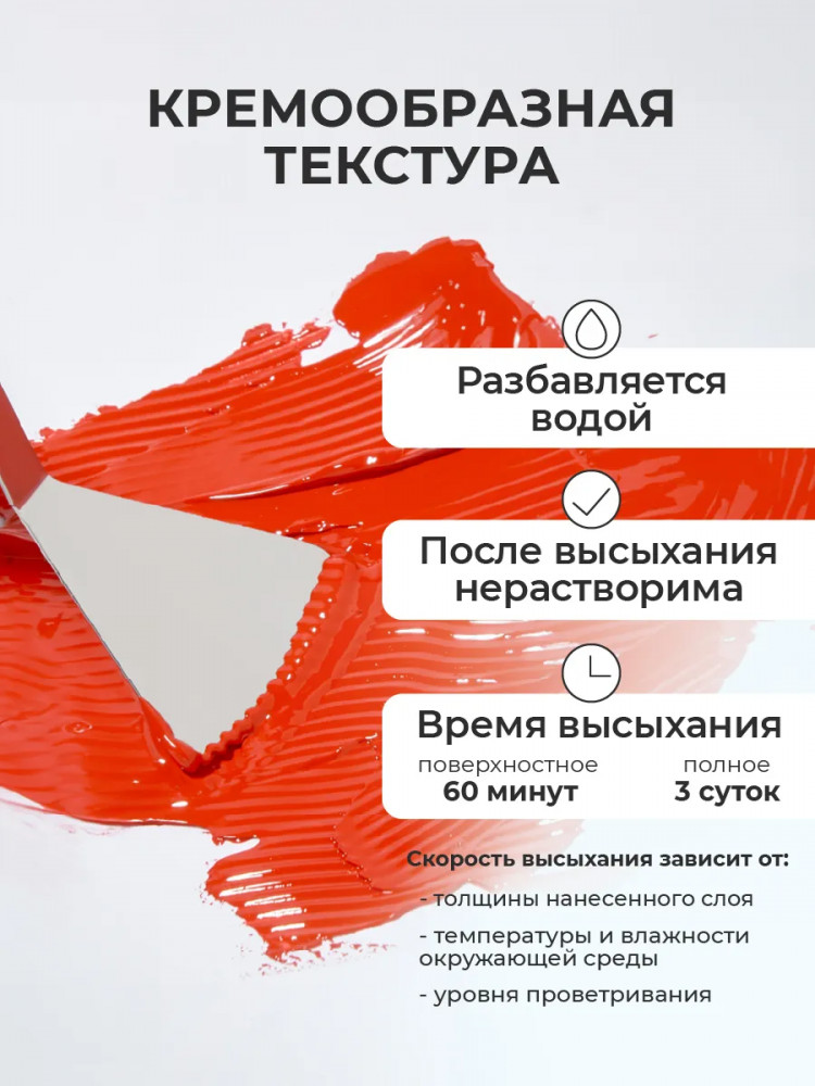 краска густоватая что можно разбавить водой ,но только не много если больше воды добавить то цвет будет светлый белый