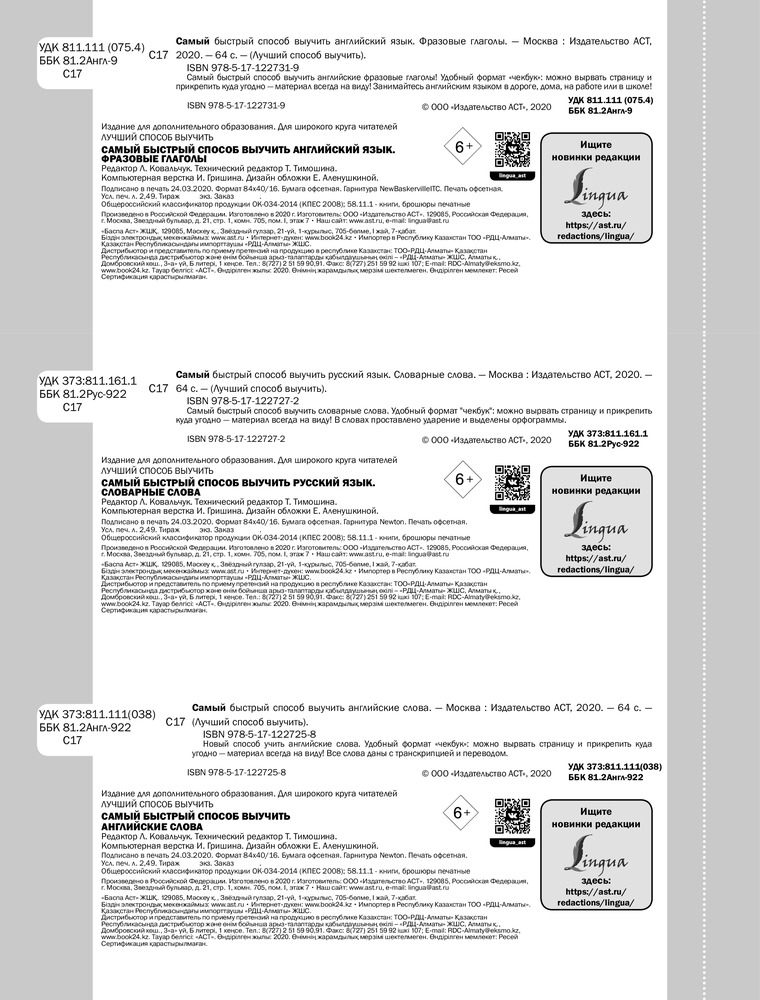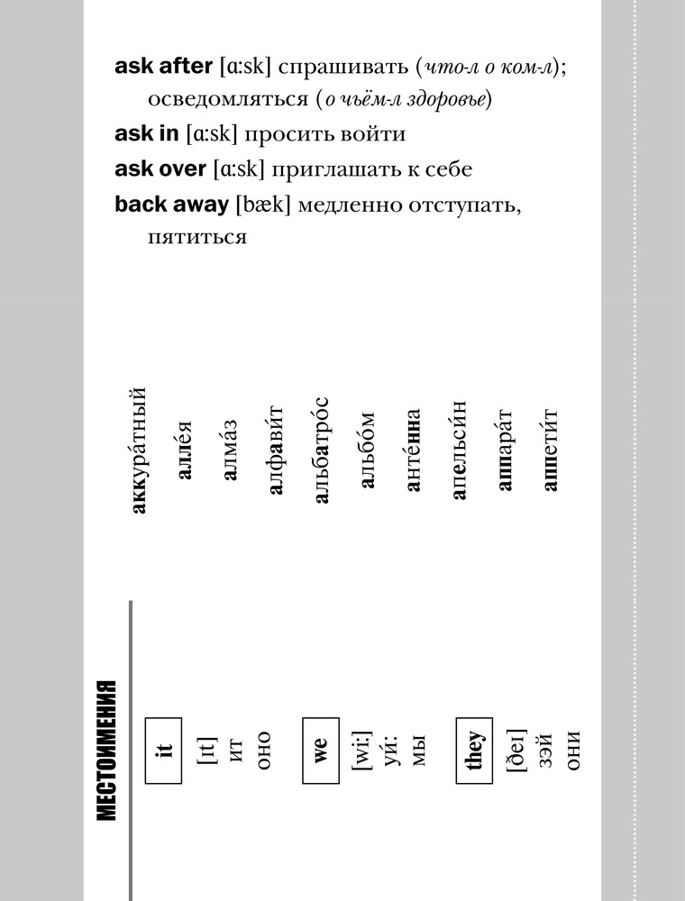 💳 Оплатить за товар можно при получении 🇰🇿 Есть бесплатная доставка по Казахстану от 1 дня 🎁 Копите бонусы с каждой покупки Серия: Лучший способ выучить Новый способ учить английские слова. Удобный формат «чекбук»: можно вырвать страницу и прикрепить куда угодно — материал всегда на виду! Все слова даны с транскрипцией и переводом. |
