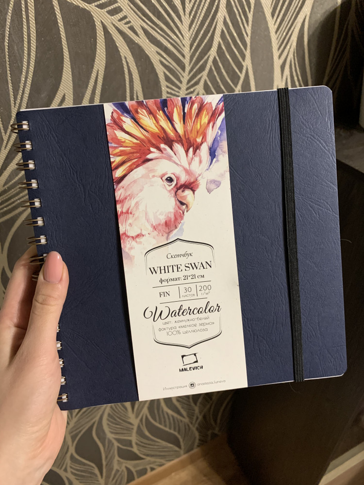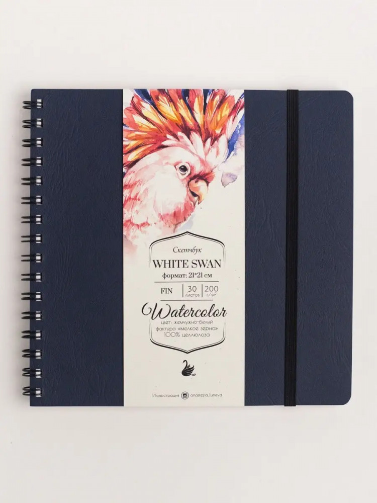 МалевичЪ Скетчбук для акварели «White Swan»-20% +126 плотные листы скрепление фактура бумаги качество
