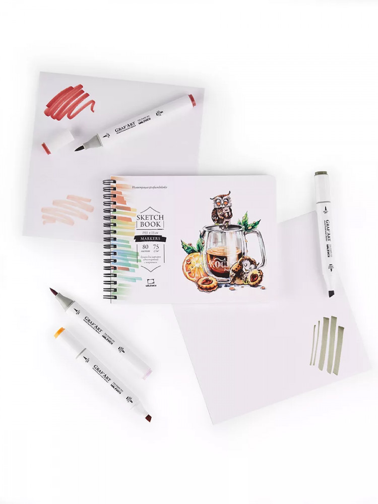 Скетчбук не понравился. Бумага на плотную кальку похожа. Маркеры по такой бумаге полосят, рисунок получается не красивый. Убедилась что для маркеров тоже нужно брать плотность от 200мг. Этих денег скетчбук не стоит.