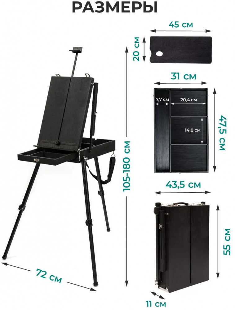 💳 Оплатить за товар можно при получении 🇰🇿 Есть бесплатная доставка по Казахстану от 1 дня 🎁 Копите бонусы с каждой покупки Современный стильный этюдник МЛ-82, который сочетает в себе два материала — дерево и металл. Ножки и держатели холста этюдника выполнены из алюминия, ящик сделан из сосны и затонирован в черный цвет. Благодаря такому сочетанию материалов этюдник получается невероятно легким, при этом его функциональность такая же, как и у более дорогих моделей из бука. Высота от 140 до 180 см. Максимальная высота холста — 82 см. |