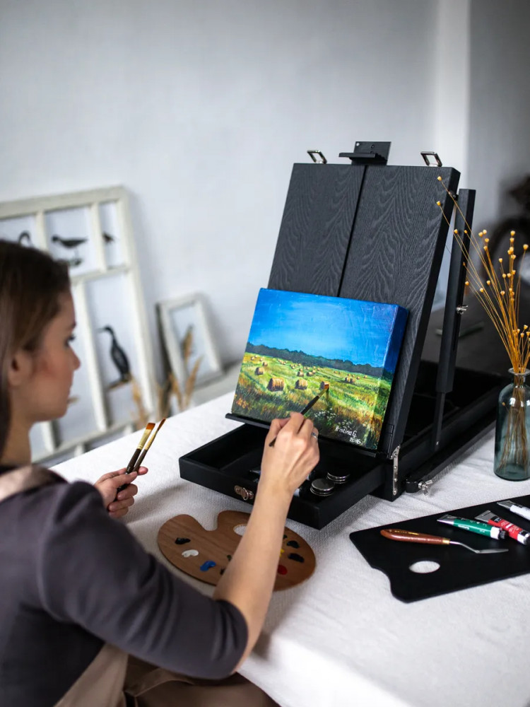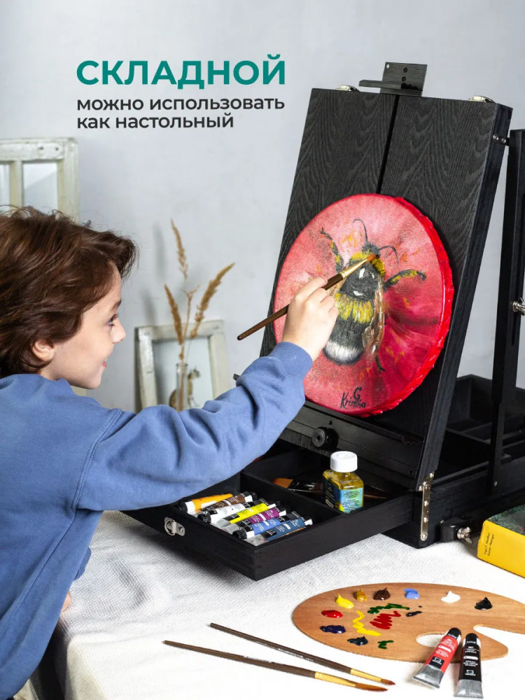 Хороший этюдный ящик, без браков, дерево прочное, удобно носить.