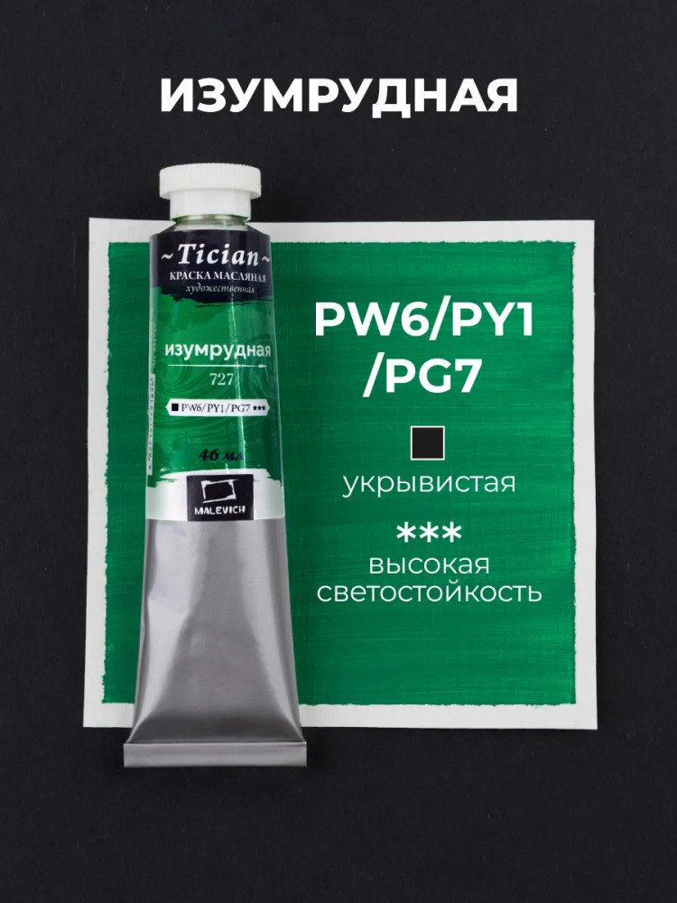 МалевичЪ Краска масляная художественная, 727 изумрудный