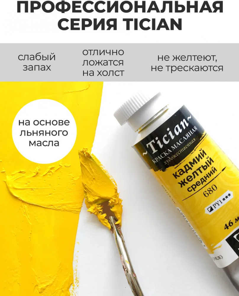 МалевичЪ Краска масляная художественная, 680 кадмий желтый средний