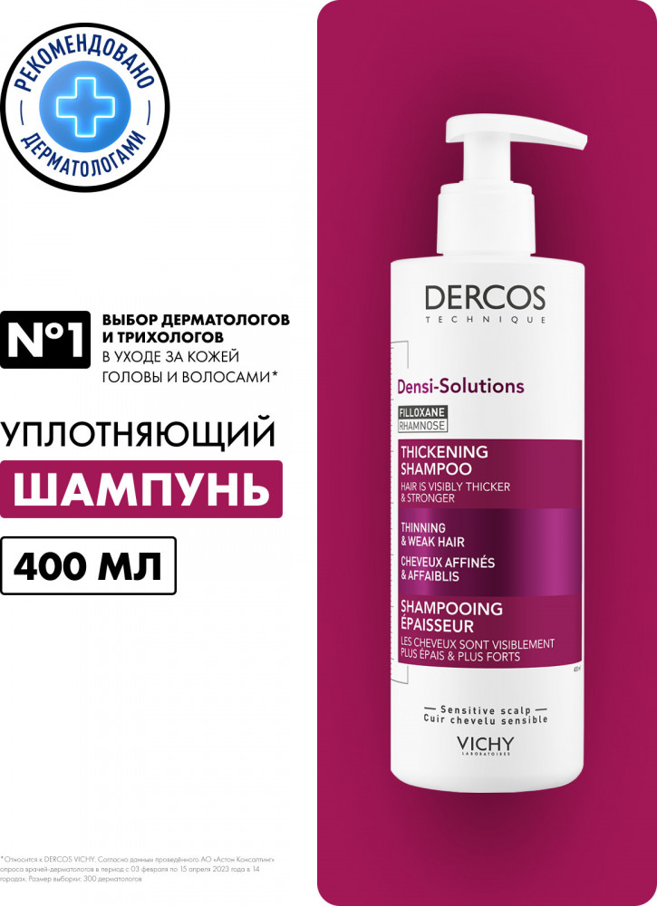 Vichy Dercos Densi-Solutions Уплотняющий шампуньхорошо очищает экономный расход обильная пена придаёт объём В данный момент этот товар отсутствует в продаже. Возможно, у нас найдется аналогичный или похожий товар здесь. Серия: Dercos Наши волосы хранят в себе следы негативных воздействий, которым они когда-либо подвергались. Качество волос страдает как от внешних факторов горячей укладки, ультрафиолета, холода или неправильного ухода, так и от внутренних изменений, стресса, гормональных колебаний. Все это может привести к нарушению структуры волокна волоса, переходу части фолликулов в фазу покоя. Стержни волос истончаются, становятся менее прочными и упругими, в результате, прическа теряет объем и густоту. Верните лучшее время Ваших волос с Dercos Densi-Solutions. |