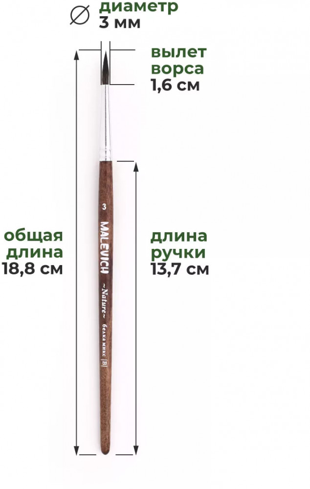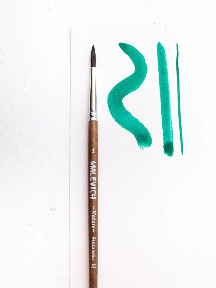 МалевичЪ Кисть «Nature»-30% +14 держит воду кончик заостряется приятно работать маленький размер щетина жесткая