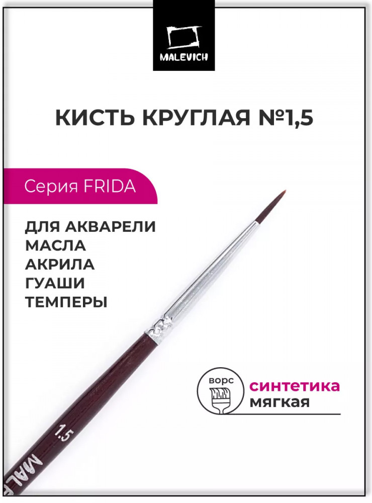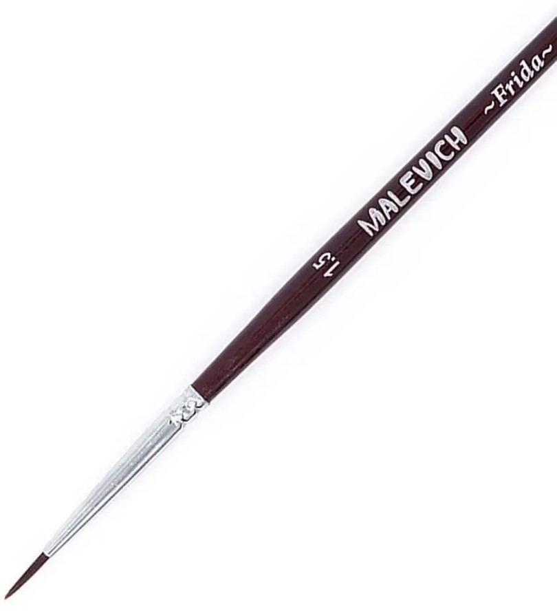 МалевичЪ Кисть «Frida»В данный момент этот товар отсутствует в продаже. Возможно, у нас найдется аналогичный или похожий товар здесь. Серия: Frida Кисть из синтетики мягкая «Frida», круглая № 1,5. Синтетическая нейлоновая кисть «Frida» с мягким эластичным ворсом. Имеет острый кончик, который долго не стирается. Подходит для акварели и гуаши, хороша для академической техники живописи и лессировок, хорошо держит воду. По свойствам напоминают натуральную белку. Латунная обойма с антикоррозийным покрытием и двойным обжимом. Березовая ручка длиной 18 см покрыта глянцевым темно-красным лаком. Длина ворса (выставка) короткая. Номер кисти соответствует диаметру в мм. |