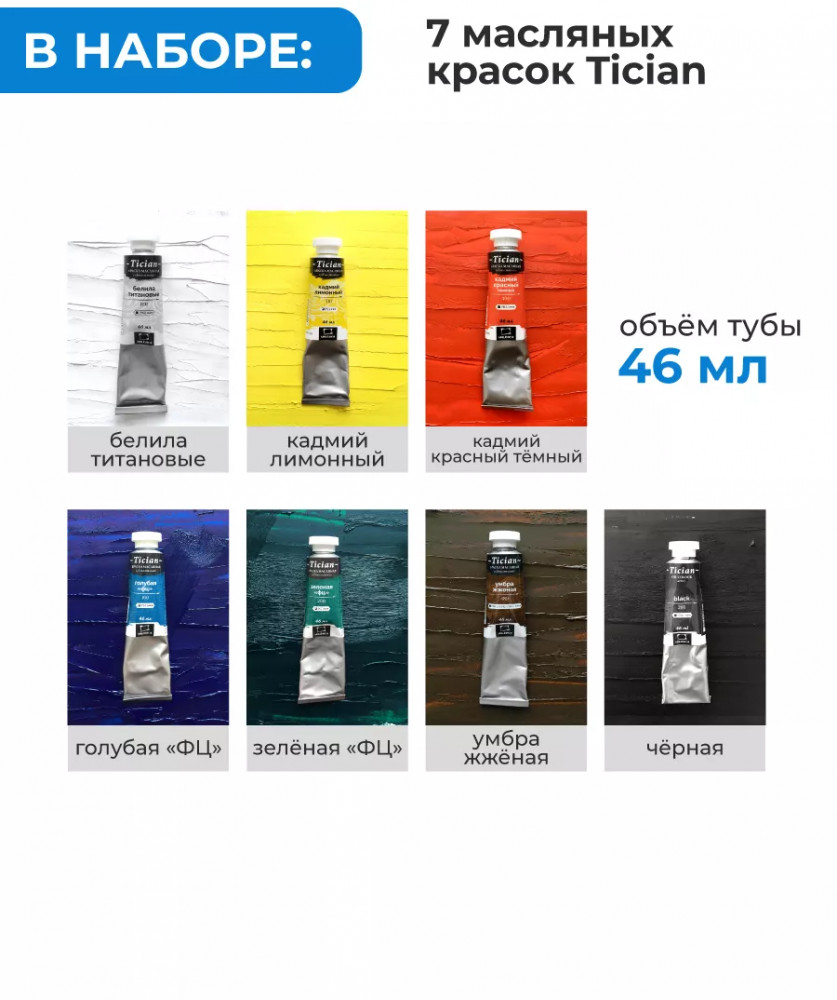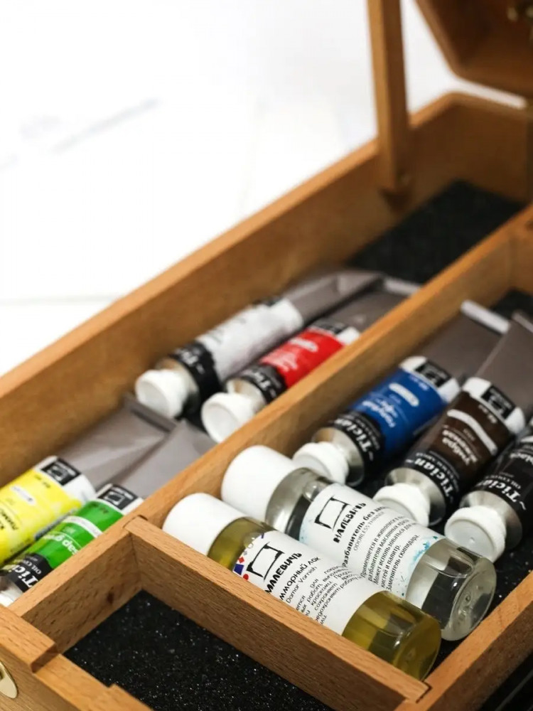 💳 Оплатить за товар можно при получении 🇰🇿 Есть бесплатная доставка по Казахстану от 1 дня 🎁 Копите бонусы с каждой покупки Серия: Tician Набор для начинающего художника «Tician» включает в себя всё необходимое — и оборудование, и инструменты, и материалы. Главный компонент, конечно же, — краски. Профессиональные масляные краски «Tician» от Малевичъ, в тубах 46мл, изготавливаются из высококачественных, светостойких пигментов и натурального, очищенного льняного масла. Отлично ложатся на холст, имеют яркие, насыщенные цвета, которые удовлетворят как сторонников классической живописи, так и любителей авангарда, В производстве используются только экологически чистые и безопасные материалы. Содержание пигмента и масла сбалансировано таким образом, чтобы получить идеальную мягкую консистенцию, позволяющую писать даже неразбавленными красками. Тончайший перетир пигмента дает возможность идеально смешивать цвета красок, а также работать методом лессировок, добиваясь акварельного эффекта. |