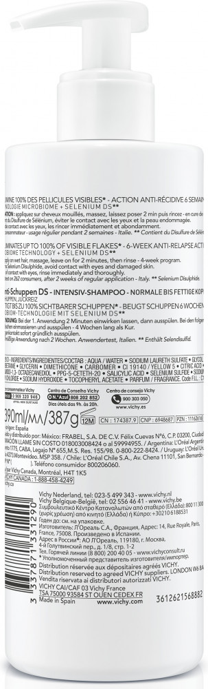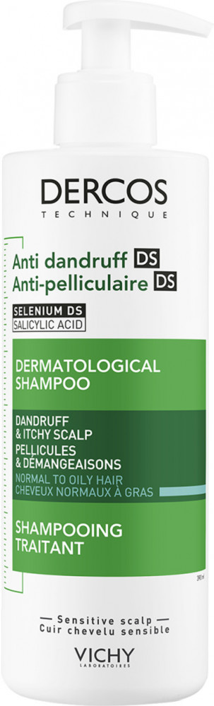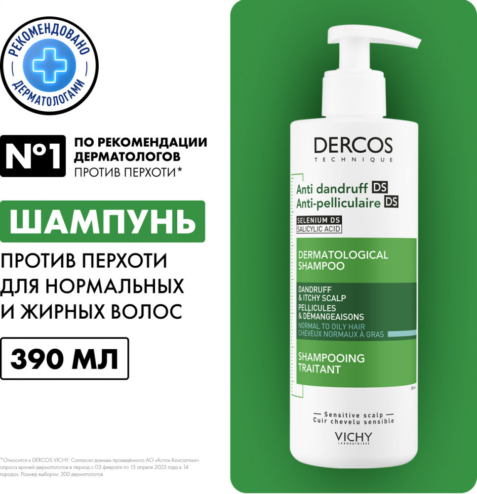 Vichy Dercos Интенсивный шампунь-уход против перхоти для нормальных и жирных волос-25% +325 убирает перхоть быстрый результат чистые волосы мягкие волосы