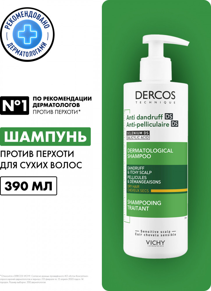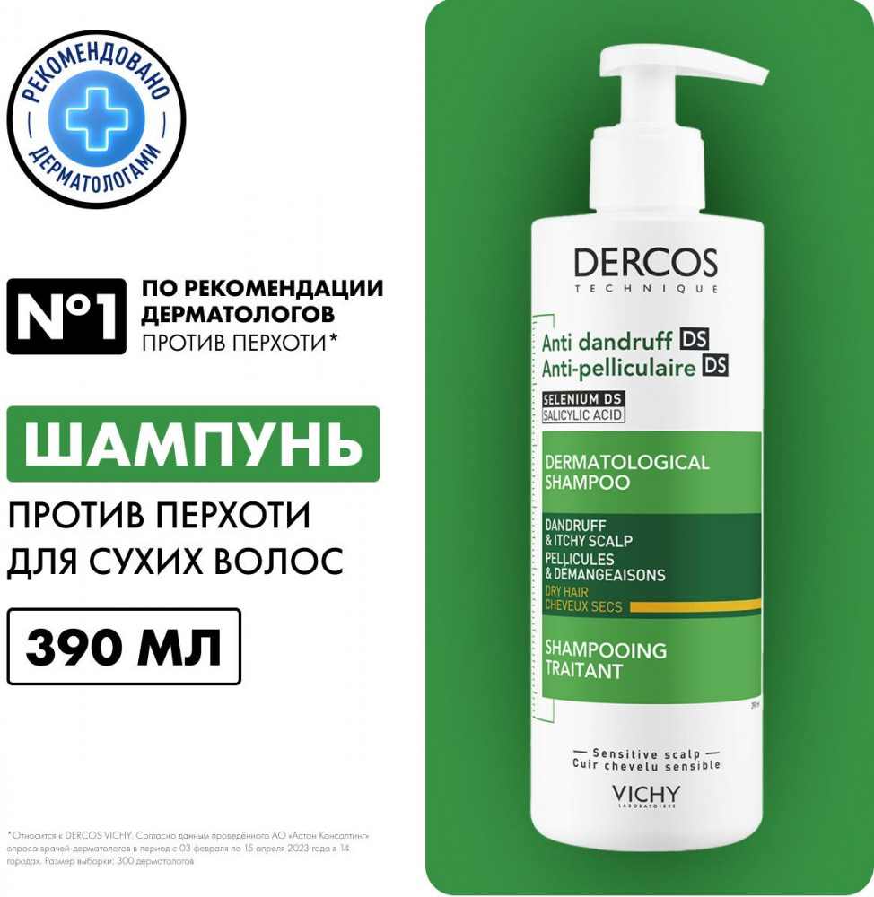 Vichy Dercos Интенсивный шампунь-уход против перхоти для сухих волос