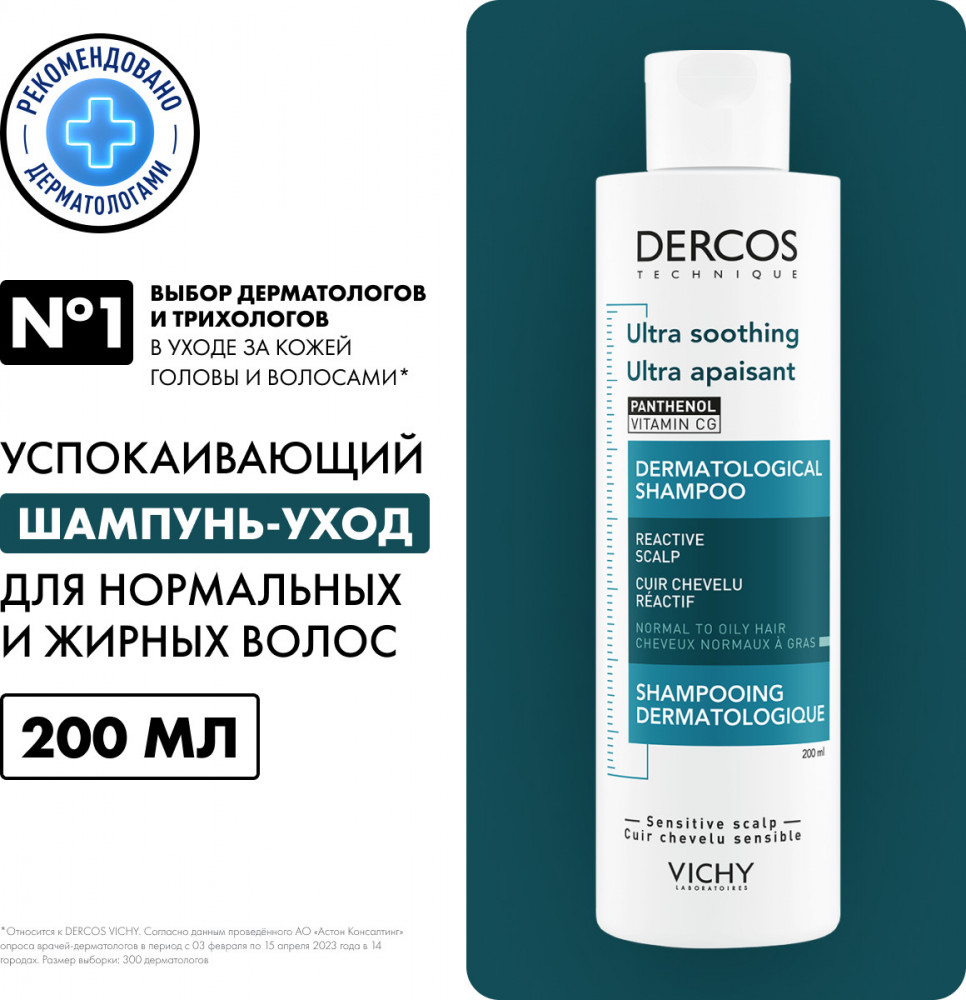 Vichy Dercos Успокаивающий шампунь-уход без сульфатов для нормальных и жирных волос-20% +254