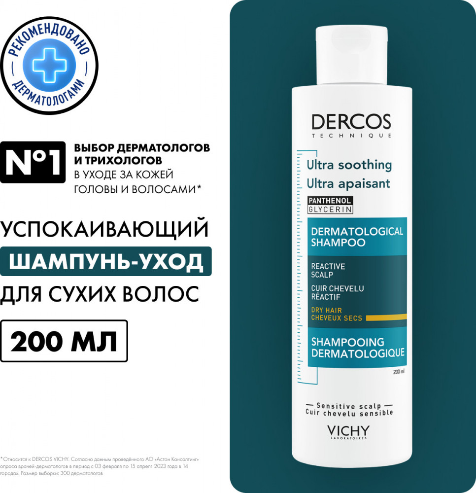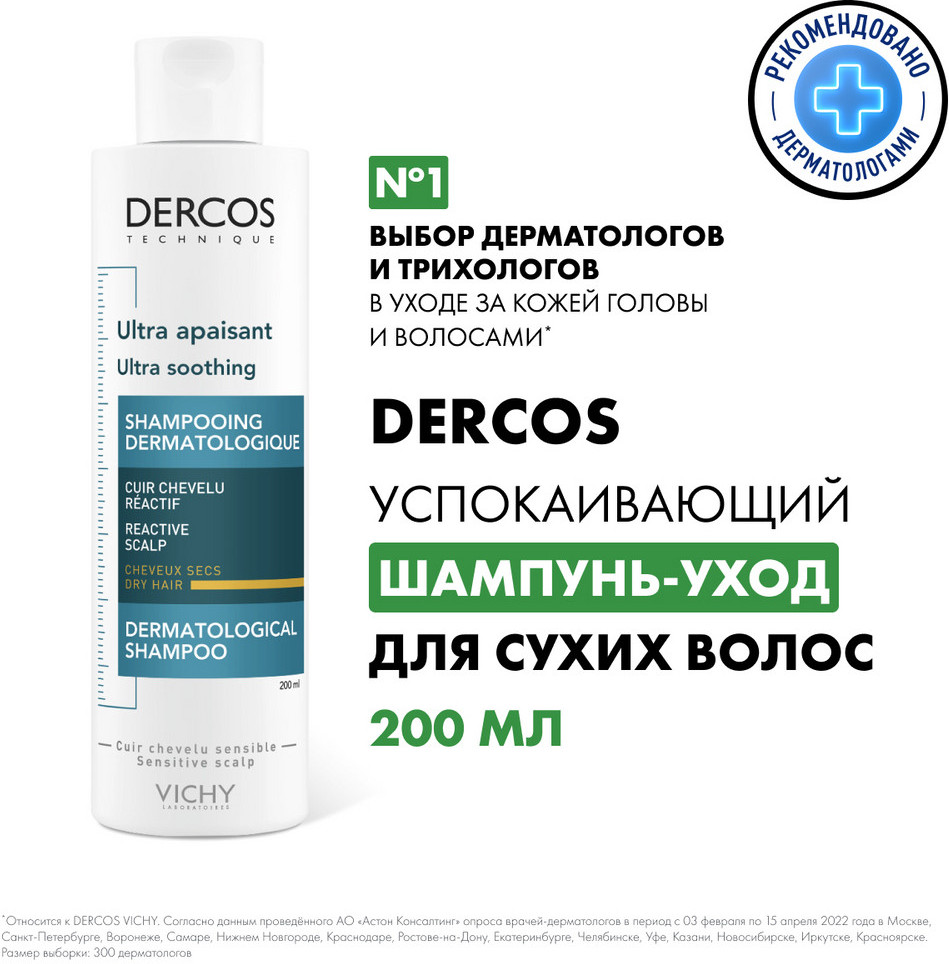 Vichy Dercos Успокаивающий шампунь-уход для сухих волос+317