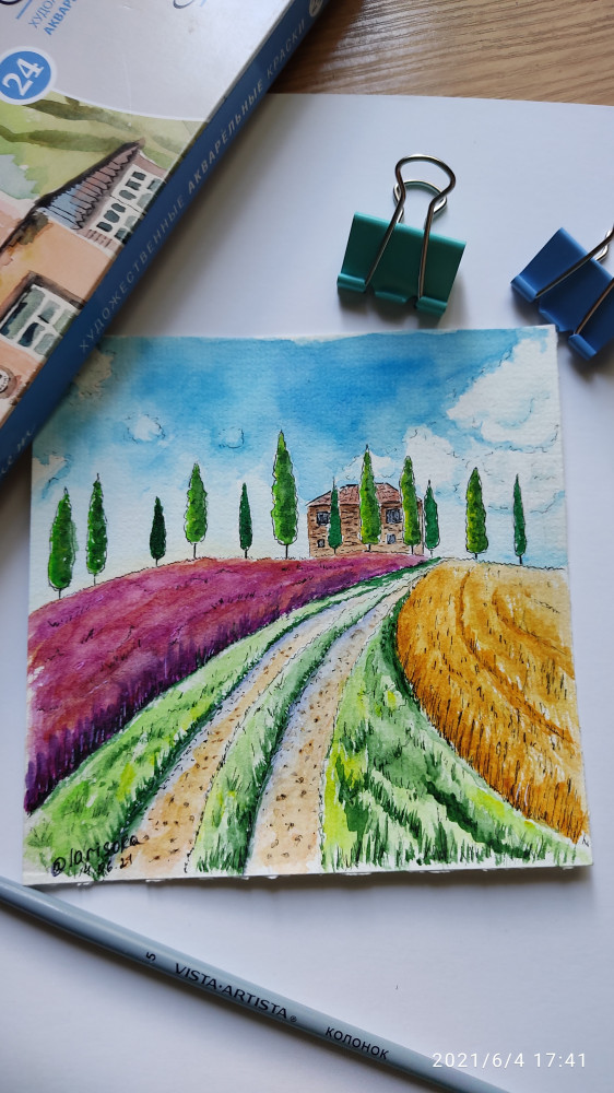 Учусь дружить с акварелью))) эта первая бумага 300мг которую пробую, очень довольна! Т.к. варианты с хлопком дороже гораздо, для тренировки эта просто шикарная.