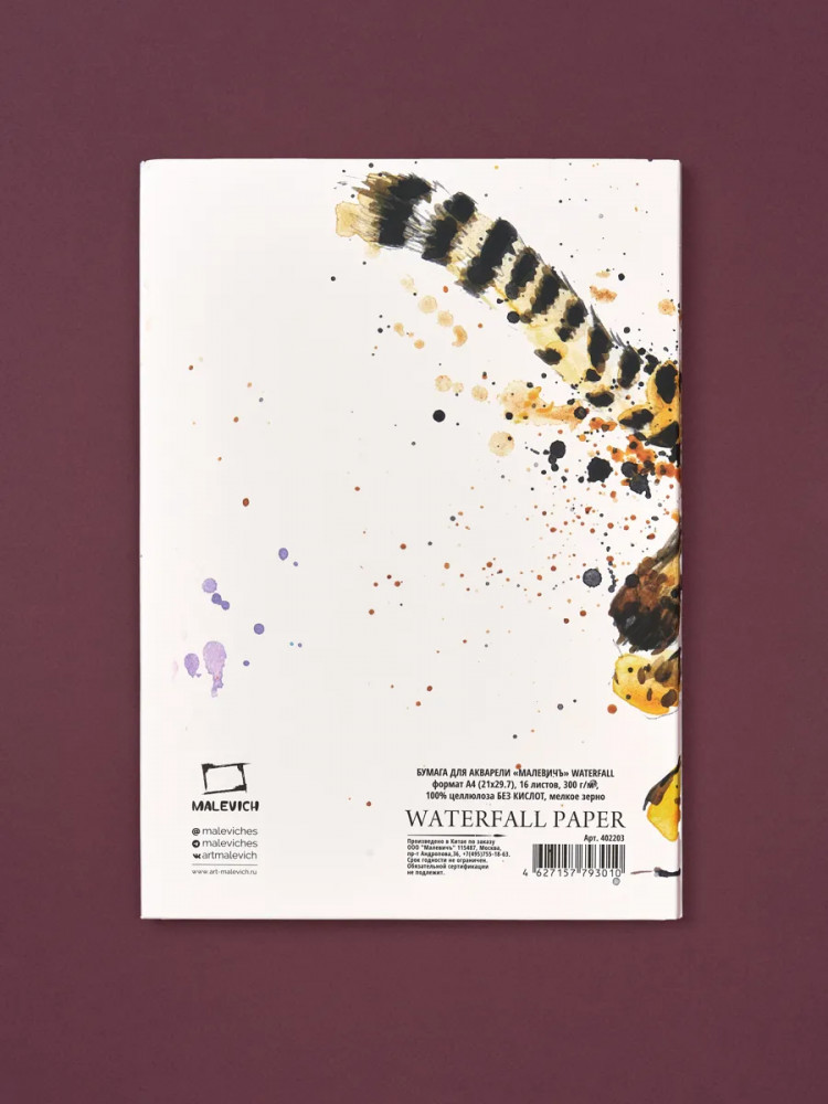 МалевичЪ Папка для акварели «Waterfall»-20% +77 плотная двухсторонняя фактура для акварели для новичков цена-качество