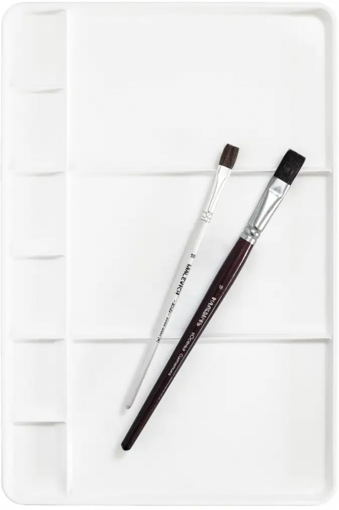 💳 Оплатить за товар можно при получении 🇰🇿 Есть бесплатная доставка по Казахстану от 1 дня 🎁 Копите бонусы с каждой покупки Профессиональная палитра художников-акварелистов «Малевичъ», предназначенная для работы с краской в кюветах или тюбиках. Девять прямоугольных секций позволяют одновременно держать на палитре кюветы с необходимыми оттенками и смешивать в меньших ячейках уже разведенную акварель. Палитра устанавливается на стол или этюдник. Белый цвет пластика позволяет оценить, как смешиваемый оттенок краски будет выглядеть на бумаге. |