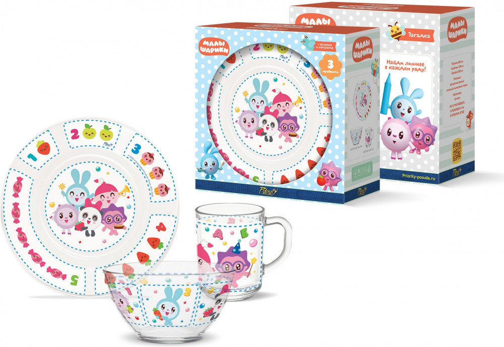 Набор неплохой, но пришёл с царапиной на тарелке. Хотела поменять, но ребёнок очень расстроился и пришлось оставить. Жаль.