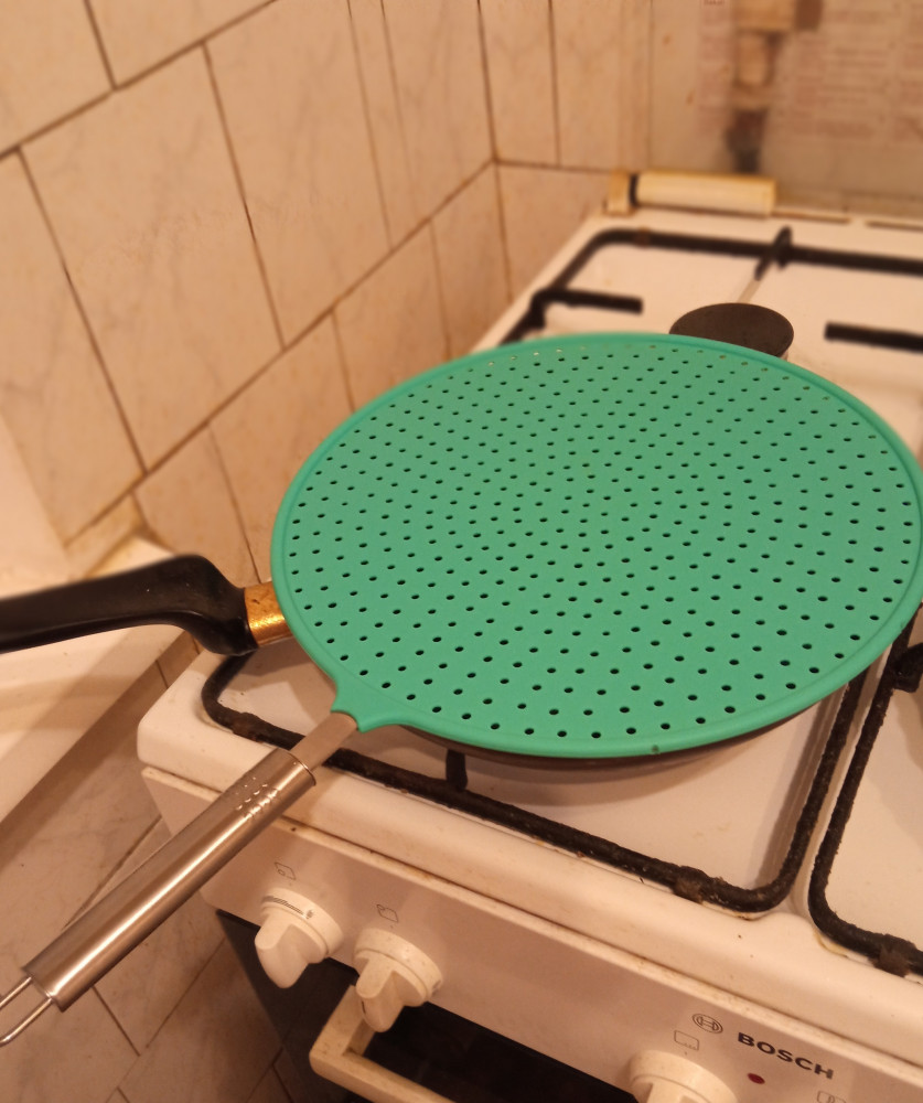 Отличная вещь ❤️ Экран прекрасно лежит на моей сковороде 26см. Брызги, мне кажется, могут чуток появится при переворачивании, и то я им прикрываю по мере возможностей в процессе. В любом случае, это огромная разница жарить с ним или без него. По размерам: 28см это прям от края до края, по внутреннему диаметру, без ободочка, будет 27см.