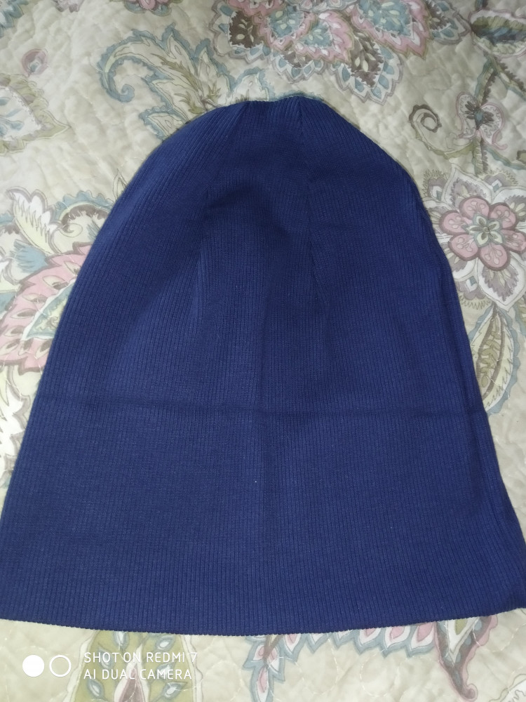 58 размер подошёл девочке, 12 лет. С цветом на фото полное не соответствие, там явно ярко-голубая шапка, а в реале-как и написано-синяя, даже так-темно-синяя. Поэтому взяли второй вариант-синий меланж, здесь всё совпадает. Качество трикотажа хорошее, нормальный вариант на раннюю осень.