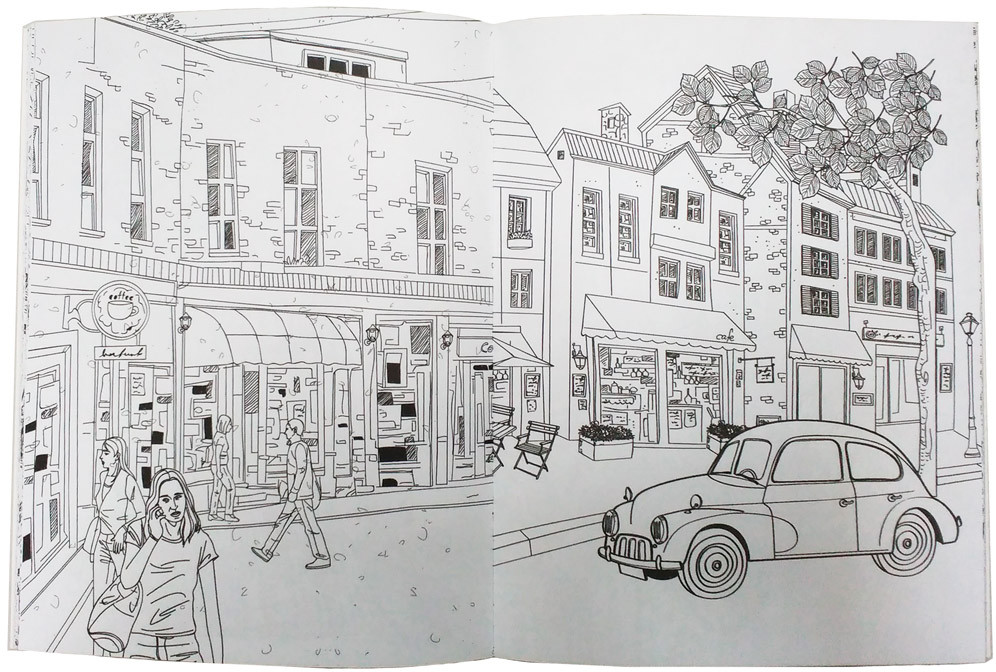 Раскраска понравилась. Иллюстрации своеобразные и разнообразные: есть реалистичные, есть в стиле "детского" рисунка, дудлы, стоковые иллюстрации. Печать двухсторонняя. Бумага сероватая, достаточно плотная, не слишком гладкая. Текстура бумаги неоднородная, некоторые страницы более шероховатые. Акварель и капиллярные ручки не протекают.